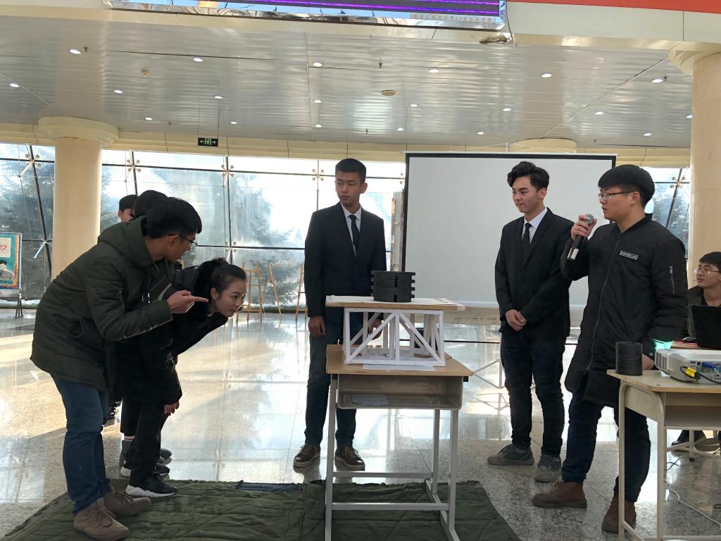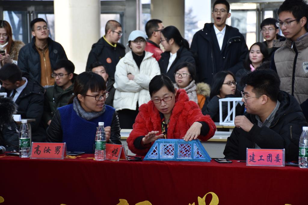 12月17日上午9时,开云app登录入口2017年趣味建筑结构设计大赛决赛在教学主楼阳光大厅举行。在决赛之前的一个多月时间里,大赛已经完成了初赛和复赛,共有12支参赛队伍进入17日的决赛。