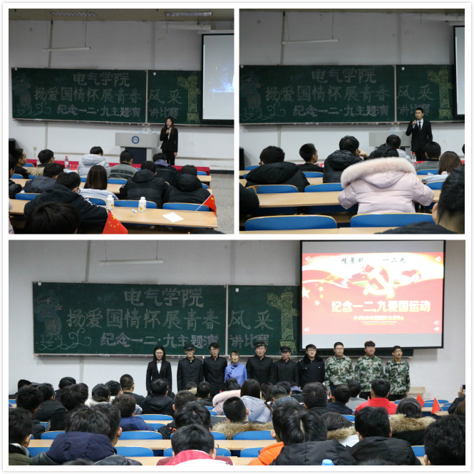 为纪念一二·九运动82周年,弘扬爱国主义精神,缅怀革命先烈,激发学生爱国热情,引导学生不忘初心,牢记使命,坚定不移跟党走,电气学院学生会于12月3日在主楼WS0304举办了“扬爱国情怀,展青春风采”纪念一二·九运动82周年主题演讲比赛。