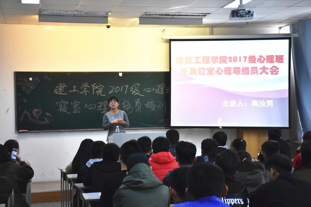 为认真贯彻落实《中共中央、国务院关于进一步加强和改进大学生思想政治教育的意见》,筑牢建工学院四级心理危机排查与干预工作网络,强化学生异常言行信息排查与报送工作的常态化、全员化和时效性,全面推进建工学院大学生心理健康教育工作,防范极端事件发生,保障学生的生命安全,推动学院工作优良发展。10月26日中午12时30分,建工学院在主楼W0921召开了2017级心理班长及心理联络员培训大会。2017级全体心理班长及寝室心理联络员参加了会议。培训大会由高汝男老师主讲。