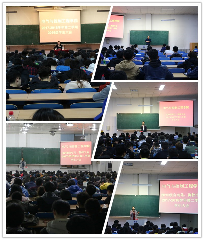 新学期伊始,按照学工部相关要求,结合学院工作实际,为系统总结上学期学生工作情况,安排部署新学期学生工作重点,全面深化“正三观、夯基础、人生路、感恩走”主题思想教育活动,引导全院大学生积极调整状态,以饱满的热情投入到新学期的学习生活及主题教育活动中来,3月21日、22日和28日晚,电气学院分别组织召开了2015级、2016和2017级三个年级学生大会,各年级辅导员参加并主持了本年级学生大会。