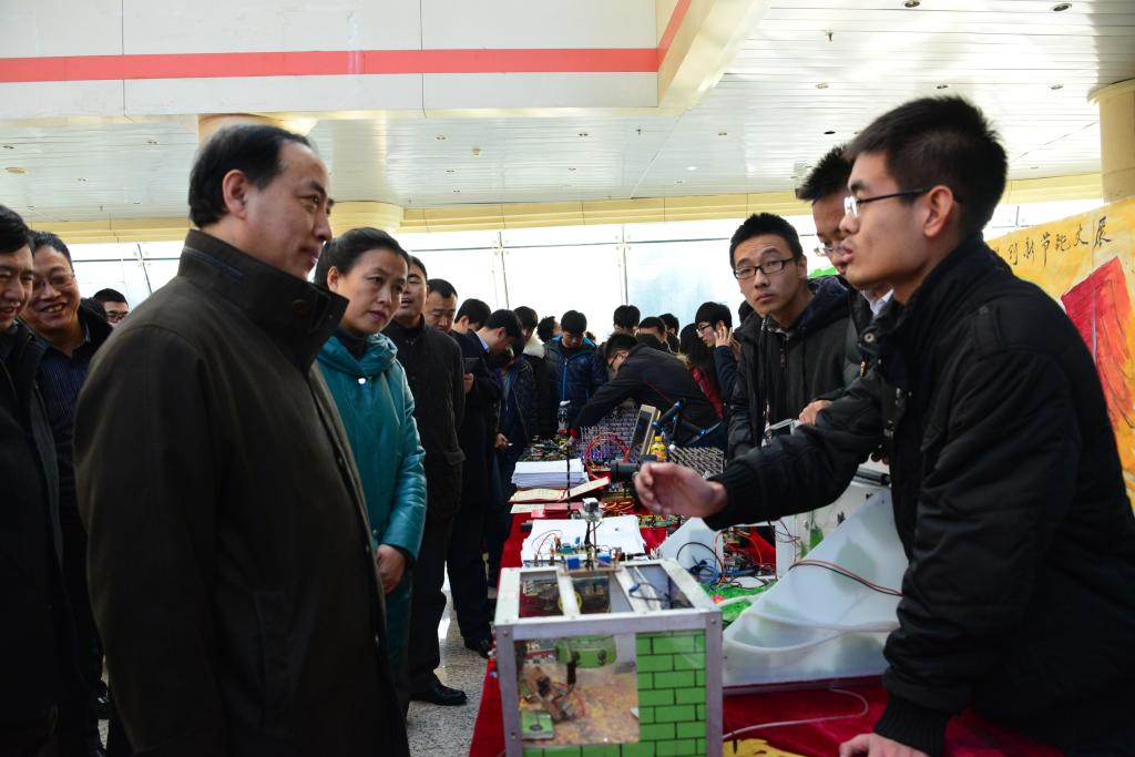 会后,全体与会领导和学生参观了本次大学生科技作品展,本次作品展共展出各种科技作品、演示模型、景观设计等实物作品170余件,作品专利、学术论文、获奖证书、作品说明、科研立项申请书及结题书等作品近800份。此次科技作品展充分展现开云(中国)大学生优秀的科学技术底蕴,作品演示动静结合,充分激发大学生对科学技术的热情,给全校学生提供了一个科技交流平台。
