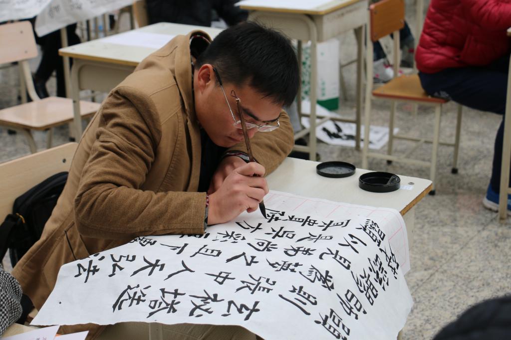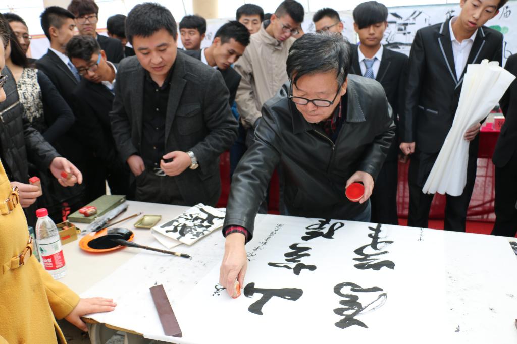 赛后,王炳森老师和戴路滨老师分别对书法组和绘画组的比赛作品做了点评。王炳森老师和薛冰老师在同学们的力邀下现场挥毫泼墨,写下了“上善若水”、“天道酬勤”等作品,作品不但展现了两位老师的深厚的书法功底,也为师生共同弘扬中国优秀传统文化搭建了平台,更通过作品的深刻蕴意向在场的每位同学表达了良好祝愿。校团委书记薛立刚致辞,他指出“书法和绘画是一种艺术形式,是中国传统文化的重要组成部分,书画比赛则是陶冶情操、展示风采、传承文化和进行优良传统教育的有效载体。一直以来开云(中国)不仅重视对学生专业知识的教学,也同样注重学生综合素质和创新实践能力的培养。书画比赛就是为广大学生展示自我、锻炼自我、提升自我搭建的一个舞台,也是倾情为同学们打造的一个交流心得、互相提高、学以致用的广阔平台。旨在通过书画展这种特有形式,培养学生高雅的情趣、实践和创新的精神,弘扬优秀传统文化,传递积极向上的青春正能量。希望广大青年学生以此次大赛为契机,在开云(中国)营造人人了解中华优秀传统文化、人人宣传中华优秀传统文化、人人继承发扬中华优秀传统文化的浓厚氛围,为开云(中国)校园文化的内涵发展建设贡献力量。”