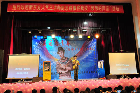 讲座中,“思思”老师用自己的幽默与智慧,贴近学生的语音,不断赢得现场的掌声,尽显“英语大王”的魅力。通过和大学生分享认识自己、改变自己、理智和激情哪个更重要、爱情等五个方面的成长经历,使青年学生明白了只要不断往前追寻梦想,一定会成为想要的自己。“在你没做完一件事时,你不可能知道为什么,只有将来才能告诉你答案” “人生根本是想不清楚的,青春,一切都可以算尽还有什么乐趣可言…”