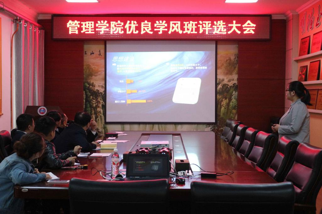 本次“优良学风班”评选在过去一年班级创建的基础上,由各班级自主申报,年级辅导员资格审查后,最终确定参加联评班级。会上各班级结合专业特点、紧紧围绕优良学风班创建过程,通过PPT的形式将班级学风状况、学风建设措施、学风建设成果以及存在的问题和下一步的工作计划进行了展示。与会老师根据班级的展示和答辩情况进行了打分。最终会计17-1班、事管17-1班、信管17-1班、事管16-1班、财会16-4班、财会15-5班、事管15-1班等七个班级获得“管理学院优良学风班”荣誉称号;财管17-2班、会计17-2班、信管17-4班、财会16-6班、事管16-2班、财会15-1班、财会15-2班等七个班级获得“优良学风班”提名奖。