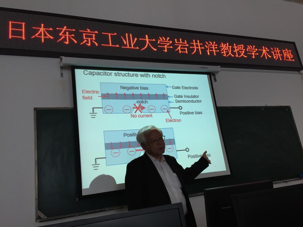 岩井洋教授为物理系的师生带来了一场名为“Semiconductor Integrated Circuit Technologies-- focused on logic CMOS Devices”的学术讲座。讲座主要围绕太阳能电池的发展及存在的问题,包括进行纳米线太阳电池的研究进展、纳米线太阳能电池的光电转化效率、电子器件发展三方面。整场报告内容丰富、深入浅出、图文并茂。岩井洋教授运用自己广博的知识、多年的经验、深刻的理解提出了自己对于CMOS未来发展趋势的看法。