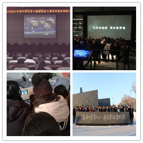 13日下午,校团委组织团学骨干成员90余人到平房区731遗址参观学习,并集体宣誓:“今天站在没有墙的历史面前,我们以青年学生的名义宣誓:我们铭记,血雨腥风,民族屈辱;我们不忘,亘古浩劫,文明罹难;我们相信,殷忧启圣,多难兴邦;我们奋斗,改革振兴,国运日昌;我们许诺,铭记历史,珍爱和平,发奋图强,振兴中华,吾辈自强!”