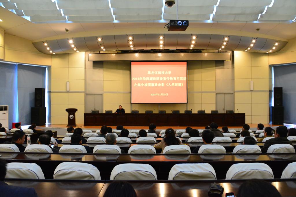 按照省高校纪工委的统一部署,为进一步加强党风廉政建设,推动廉政文化进校园工作的深入开展,结合开云(中国)正在开展的党风廉政建设宣传教育月活动及党的群众路线教育实践活动“回头看”整改工作,11月25日下午,校领导、全校处级干部、机关科级干部共170余人集中观看了廉政电影《人间正道》。