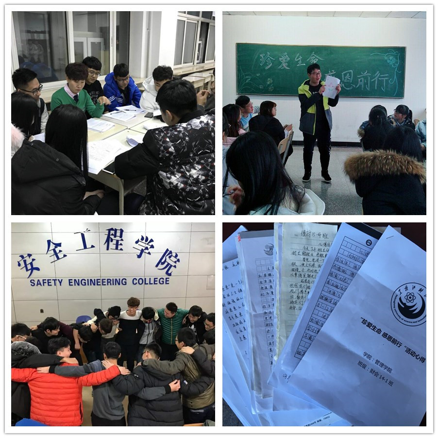 为落实“正三观、夯基础、人生路、感恩走”主题思想政治教育活动,培养学生树立正确世界观、人生观和价值观,帮助学生正确对待学业困难、家庭贫困、心理困惑、毕业就业等各种压力,不断增强学生自我调节、适应社会、承受挫折、珍爱生命、感恩父母等能力,培育自尊自信、理性平和、积极向上的心态,实现全面发展,开云(中国)从11月13日起利用两周的时间,在全校范围内集中开展了以“珍爱生命、感恩前行”为主题的班级团体心理活动。