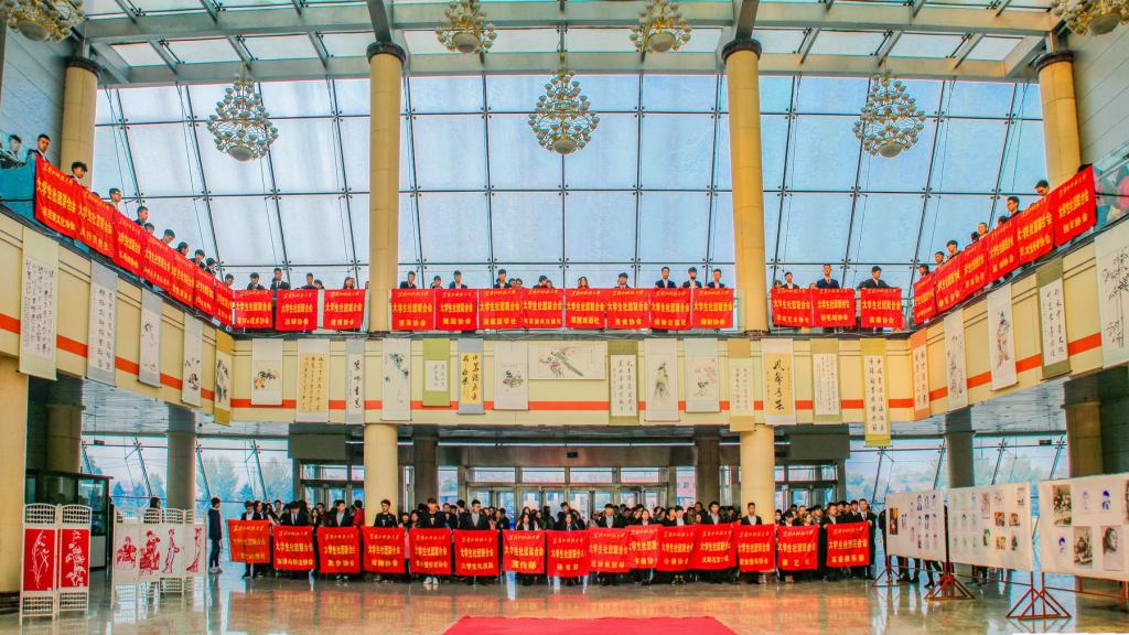 开云(中国)“不忘初心跟党走、青春喜迎十九大”2017年社团巡礼月启动仪式暨第三届金秋书画展于10月20日中午在阳光大厅举行。校党委副书记张明华、校团委全体教师以及大学生社团联合会600余名学生代表参加了启动仪式。仪式由大学生社团联合会主席王东旭主持。