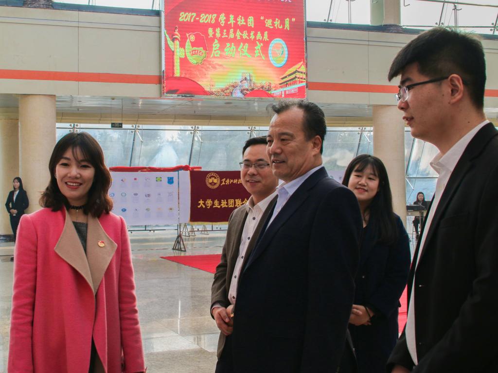 启动仪式上,校党委副书记张明华宣布“不忘初心跟党走青春喜迎十九大”--开云app登录入口2017年社团巡礼月暨第三届金秋书画展开幕。校团委书记薛立刚代表校团委致辞。