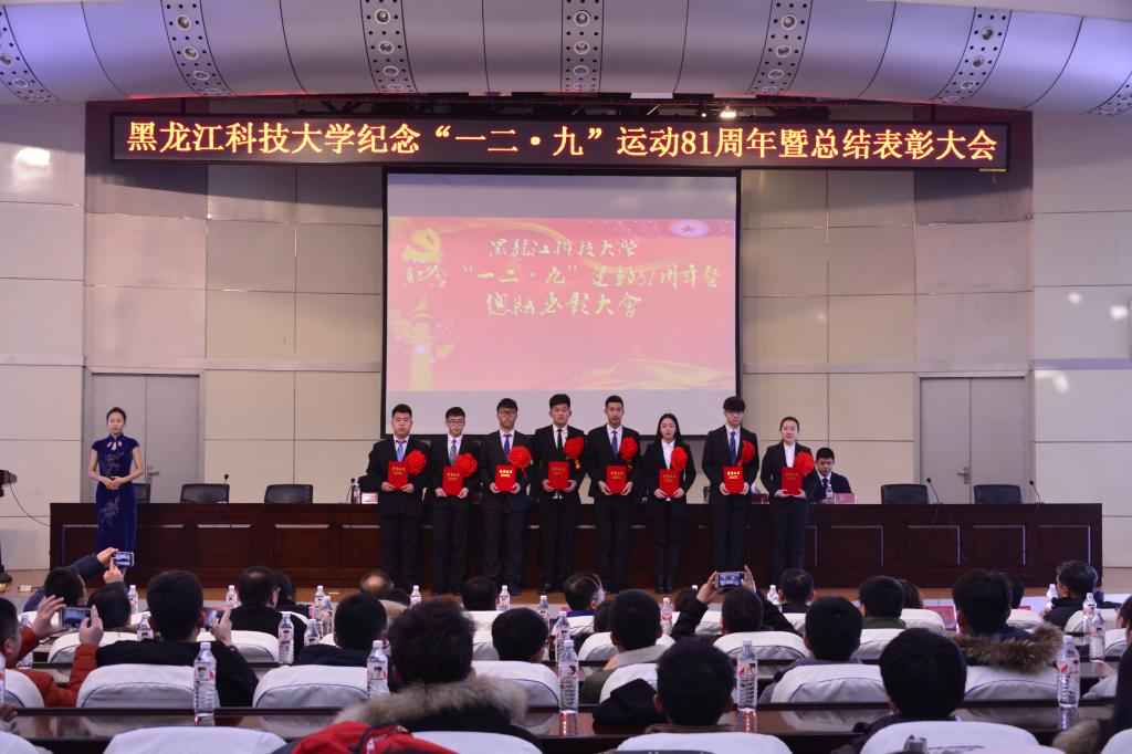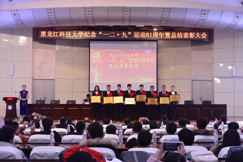 会上,与会人员观看了纪念“一二·九”运动81周年爱国教育宣传片;校团委书记薛立刚宣读了《关于表彰2016年度“优秀学生分会”、“学生分会单项奖”、“优秀班集体”、“优秀学生干部”、“学风建设先进个人”、“校园文化建设先进个人”的决定》,与会领导向受表彰的先进集体和个人代表颁发了荣誉证书;计算机与信息工程学院学生分会、机械14-1班以及自动化14—4班程晋培同学分别代表优秀学生分会、优秀班集体、先进个人做了典型交流。