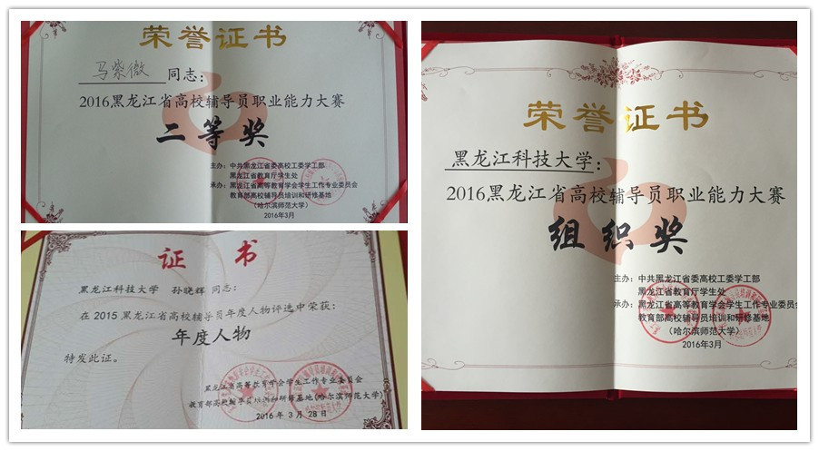 近日,由黑龙江省委高校工委、省教育厅主办的“2015黑龙江省高校辅导员年度人物”和“2016黑龙江省高校辅导员职业能力大赛”圆满落下帷幕。