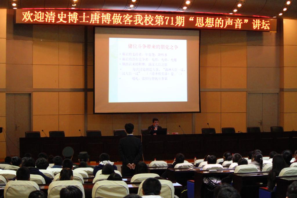 学习弘扬雷锋积极进取精神,明辨笃实,争做“可爱”青年。3月以来,校团委依托“思想的声音”讲坛开展引领教育,分别邀请百家讲坛80后讲师唐博博士、著名礼仪专家张大生教授、青年作家赵星为同学们进行讲座培训,激发青年学生积极进取,在奋斗中书写美好青春。环化学院、建工学院、计算机学院、管理学院、国教学院等邀请“自强之星”等各类学生典型进行励志讲座,发挥朋辈引领作用。