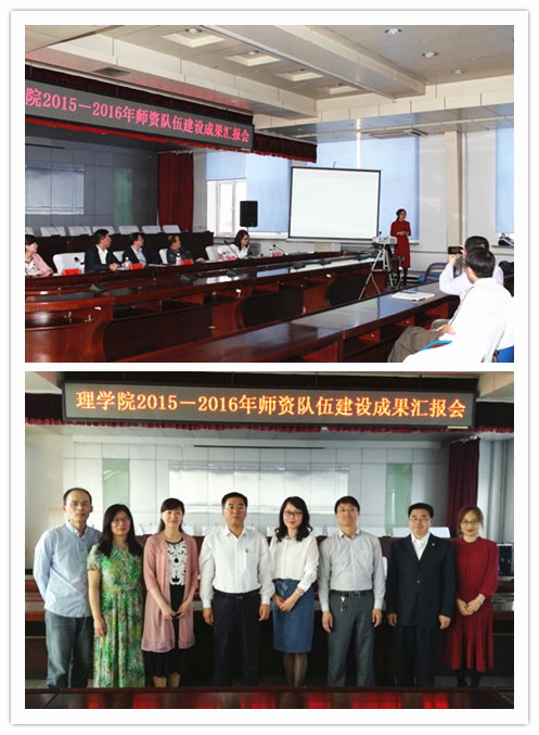 5月10日下午,理学院在学校6004会议室召开2015-2016年师资队伍建设汇报会,人事处处长王维杰、教务处副处长李孝东,理学院全体教师参加会议。会议由理学院党委书记王建国主持。