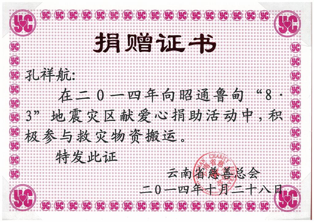 捐赠证书
