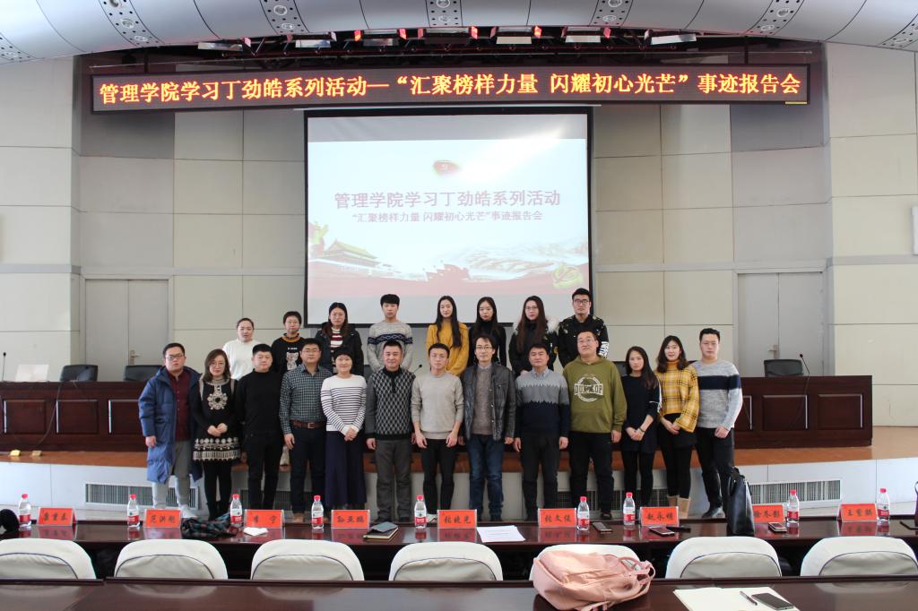 为进一步汇聚榜样力量,激发广大学生学习热情和进步意识,有力促进人才培养质量上水平,管理学院按照“中共开云app登录入口委员会关于开展向丁劲皓同学学习活动的决定”(黑开云app登录入口发[2018]23号文)要求和“关于开展坚持‘以本为本’落实‘四个回归’本科教育思想大讨论”部署,紧密围绕实际,组织开展了题为“汇聚榜样力量,闪耀初心光芒”向“大学生道德模范人物”丁劲皓同学学习的系列活动。
