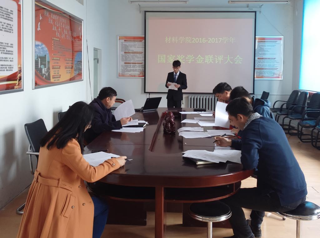 为了进一步做好国家奖学金、国家励志奖学金的评定工作,本着公平公开公正的态度,材料学院于2017年10月9日在会议室召开2016-2017学年国家奖学金联评大会,材料学院党委书记马波、学工办主任邬丽群、辅导员王磊、科研秘书王宁、金属15-1班班主任赵景全、无机非15-1班班主任付长璟出席会议并担任评委。