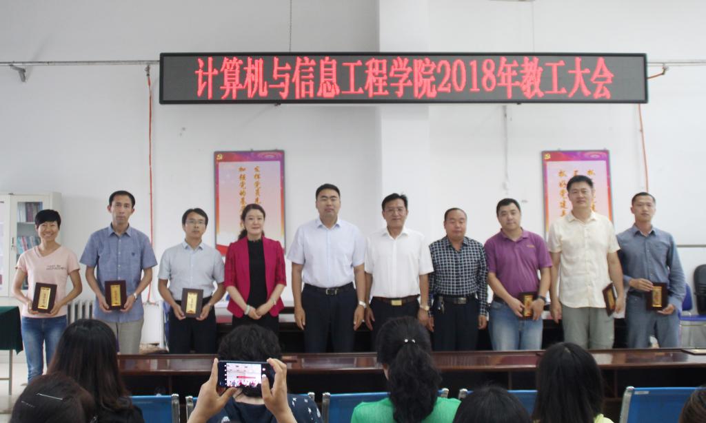 在全党和全国深入学习宣传习近平新时代中国特色社会主义思想和党的十九大精神的重要之年,为了深入贯彻学校一届三次教代会精神,全面落实2018年的重点工作,加快学院各项工作的发展,凝聚全院教职工力量,充分发挥主人翁精神,计算机学院于6月25日中午在三楼会议室召开了2018年教工大会。会议由学院工会主席张丽媛主持。