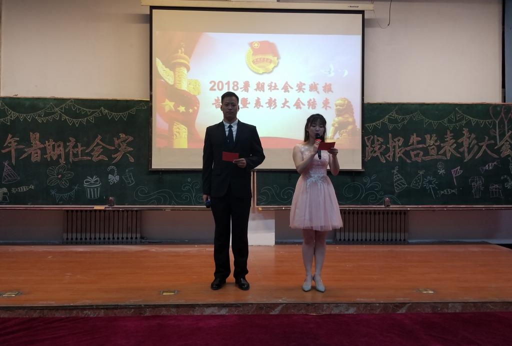 大会以全体起立唱团歌作为开场。首先由学院团委副书记陈妍宣读暑期社会实践活动的表彰决定。与会嘉宾为获得一等奖、二等奖、三等奖及优秀个人称号的学生颁发了奖状和奖品。优秀团队代表白雪、杨赫男及优秀个人代表田湉、谭何为、张立业分别为大家分享了自己暑期社会实践的经验心得。