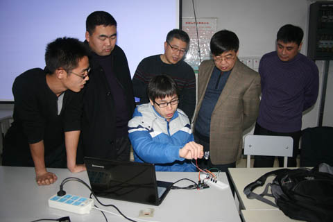 会后,副校长张凤武又深入计算机学院软件实验室,听取软件工程专业《软件新技术—Arduino》课程改革汇报,课程主讲教师关明山汇报了该课程在课程目标、课程内容、授课方式等方面的改革情况,该课程的104名同学共制作了52件作品,每件作品都充分展示了学生的创新能力,代表作品有寻迹小车、手机遥控小车、光立方、电子钢琴、酒精检测仪、自动浇花仪等。听完汇报后,张校长深入到学生中,一一了解学生课程学习及实践作品制作情况,并对课程改革给予了充分肯定。