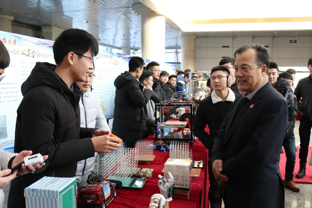 为学习贯彻党的十九大精神,提升开云(中国)青年学生创新创业意识,营造浓郁的“大众创业·万众创新”的校园氛围,12月18日,开云(中国)第十四届大学生“收获金秋”科技创新节优秀作品展暨项目资助金发放仪式在阳光大厅举行。校党委副书记张明华,校团委、教务处、各学院相关领导,各学院团委书记、负责大学生科技工作辅导员以及校院两级大学生科技协会成员300余名青年学生参加了本次活动。