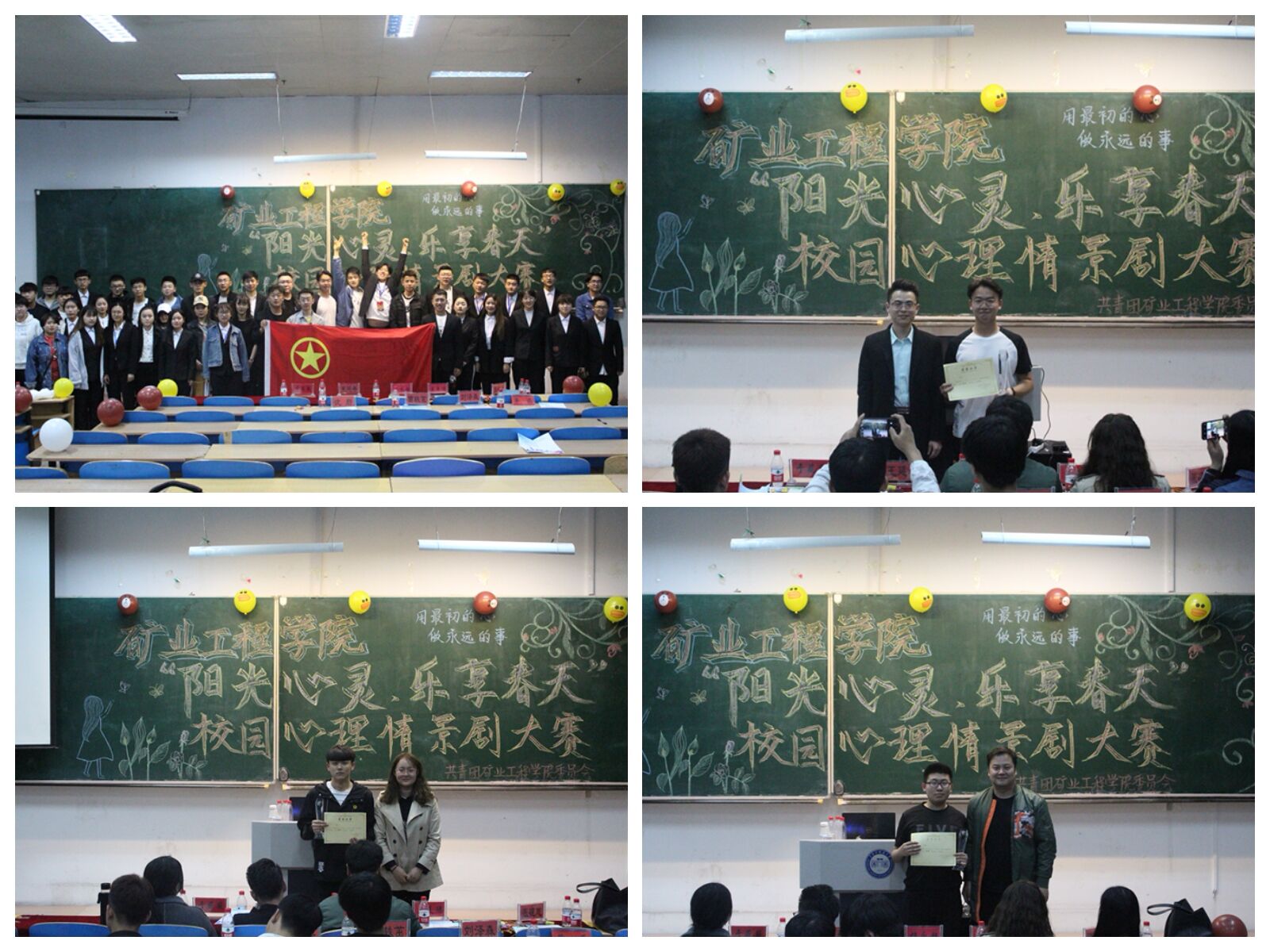为促进大学生关注心理健康,提高对心理问题的正确认识。4月12日晚矿业工程学院团委在主楼ES0303举办以“阳光心灵,乐享春天”为主题的校园心理情景剧评比大赛。