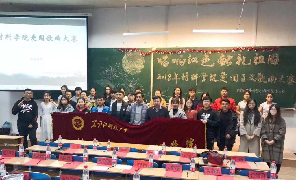 11月15日,材料学院在主楼ES0303教室举办了以“唱响红色,献礼祖国”为主题的爱国歌曲大赛。材料学院党委书记马波,材料学院全体辅导员老师以及各二级院系团委副书记参加了本次活动。