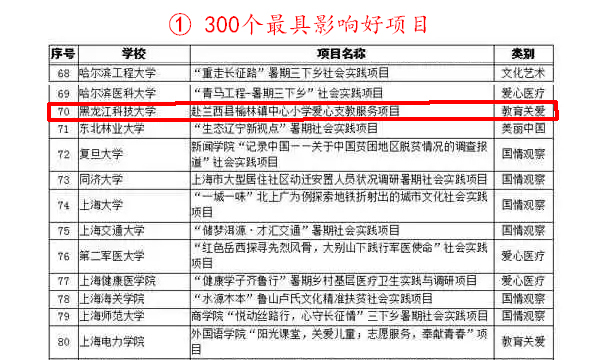 据悉,2016年全国大中专学生志愿者暑期“三下乡”社会实践“千校千项”成果遴选宣传活动由团中央学校部指导,人民网、中国青年报社共同主办。活动旨在学习宣传贯彻习近平总书记系列重要讲话精神,发挥社会实践在帮助青年学生受教育、长才干、作贡献方面的积极作用,引领青年学生努力做“有理想、有追求,有担当、有作为,有品质、有修养”的大学生。活动自2016年9月7日启动以来,得到青年学生的积极参与,并涌现出一大批具有典型性、可借鉴的个人及团队。活动期间,组委会共收集到13万份申报材料,经过初步筛选、投票、专家评审等环节,最终产生300个最具影响好项目、300名实践组织带头人、300个匠心传播正能量作品以及100篇百佳模拟E提案。(周恩远/文)