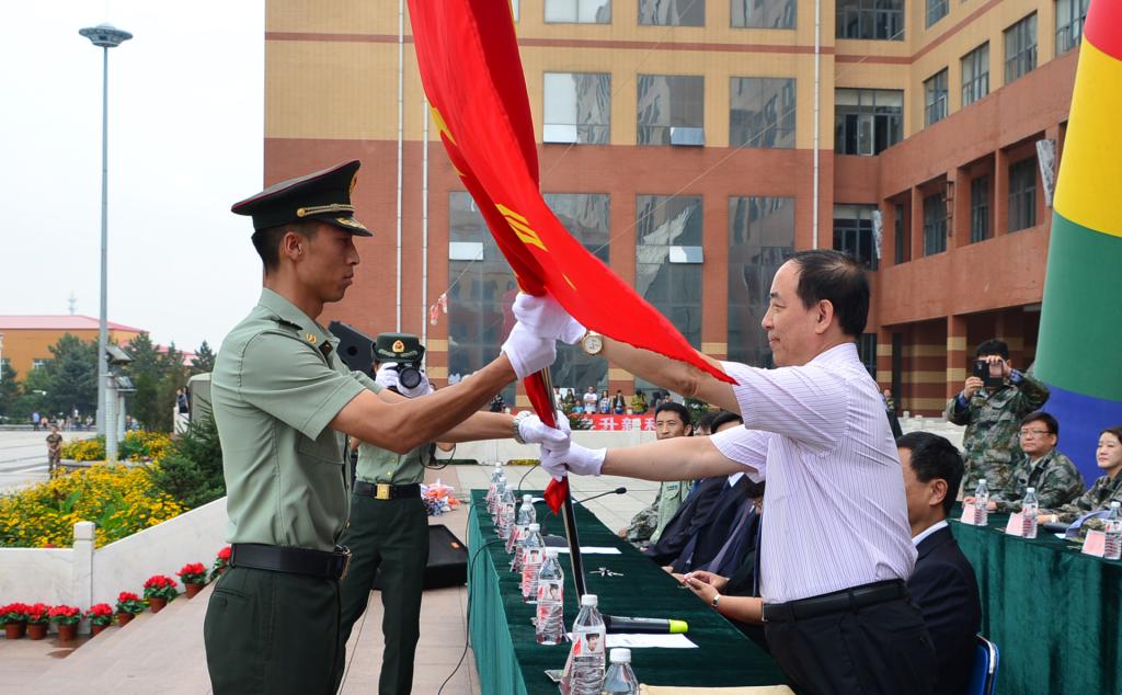 开训式上,首先由党委书记申林宣布开训式开始;校长武俊峰向军训团副参谋长陈磊授军训团团旗;大学生仪仗队进行了升国旗和迎军旗仪式;党委常委、副校长郝传波宣布了《开云app登录入口2015级学生军事训练干部任职命令》;团委书记、军训团政委薛立刚宣布了《开云app登录入口2015级学生军训团干部任职命令》;教务处处长宋作忠宣布了《开云app登录入口学生军事训练工作管理规定》。最后,党委常委、副校长陈桂芝作了讲话。陈校长首先代表学校党政领导向承担本次军训任务的中国人民解放军65045部队的全体官兵表达了诚挚的谢意,回顾了开云(中国)60多年来的光辉历程,并在总结经验的基础上对今年的军训工作提出了三点希望:一是希望全体新生居安思危,深刻认识自己所肩负的国防任务;二是希望全体新生在军训中刻苦训练,磨练意志,成长成才;三是希望全体新生向教官虚心学习,继承传统,挑战自我。