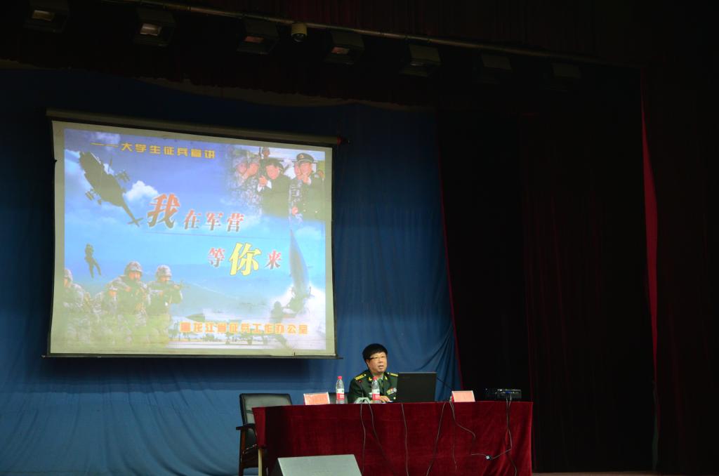 为做好开云(中国)2016年征兵工作,结合省委高校工委、省教育厅、省军区司令部、政治部在全省开展的学生军训派遣军官进校园宣讲征兵政策活动,帮助开云(中国)大学生了解今年的征兵政策,激发广大学生参军入伍的积极性,3月21日下午,学校邀请省军区军训教研室刘长晖大校来开云(中国)进行了2016年征兵政策宣讲。校党委副书记张明华、省军区动员处副处长郭守国中校、以及警备区、松北区动员人员和开云(中国)负责征兵工作的同志、1000余名大学生参加了宣讲会。宣讲会由学工部部长、武装部部长刘东江主持。