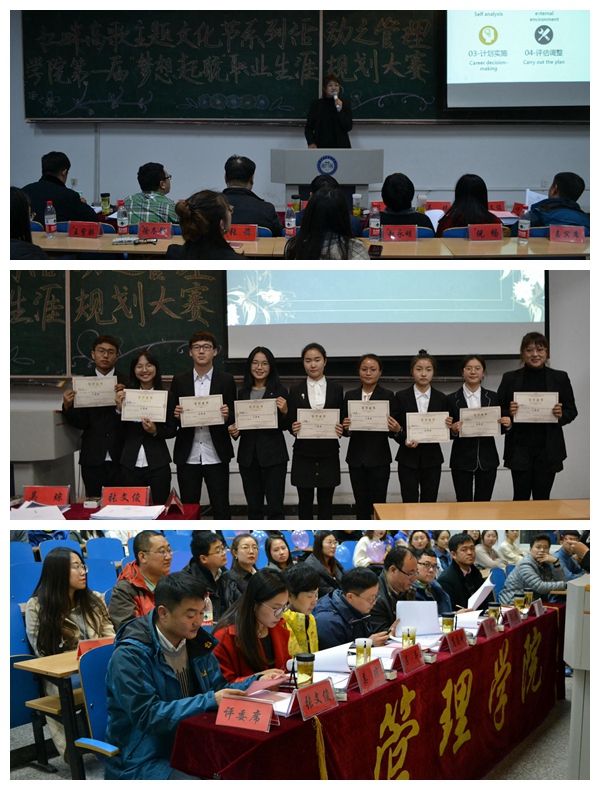 本届大学生职业生涯规划大赛以“梦想起航”为主题,旨在为每位心怀梦想的同学,在前行的路上点亮一盏科学规划的指明灯。大赛历时2个月,通过初赛、复赛、决赛三大环节,面向2017级27个班级的全体学生进行海选,从800多份职业生涯规划书中挑选出54人进入复赛。复赛阶段由管理学院职业生涯规划专业课教师左巍、赵永明、范洪魁、张茜作为专业评委,评选出9人进入决赛。