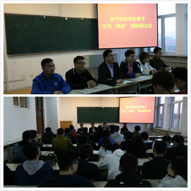 为深入学习宣传“两会”精神,切实将“两会”精神与学生成长成才的实际结合起来,用过去五年国家的发展成就激发广大学生的民族自豪感,用未来国家的发展目标激发广大学生的奋斗热情,在全体学生中掀起学习“两会”精神的热潮,电气学院于3月29日组织召开了学生骨干学习“两会”精神研讨会。