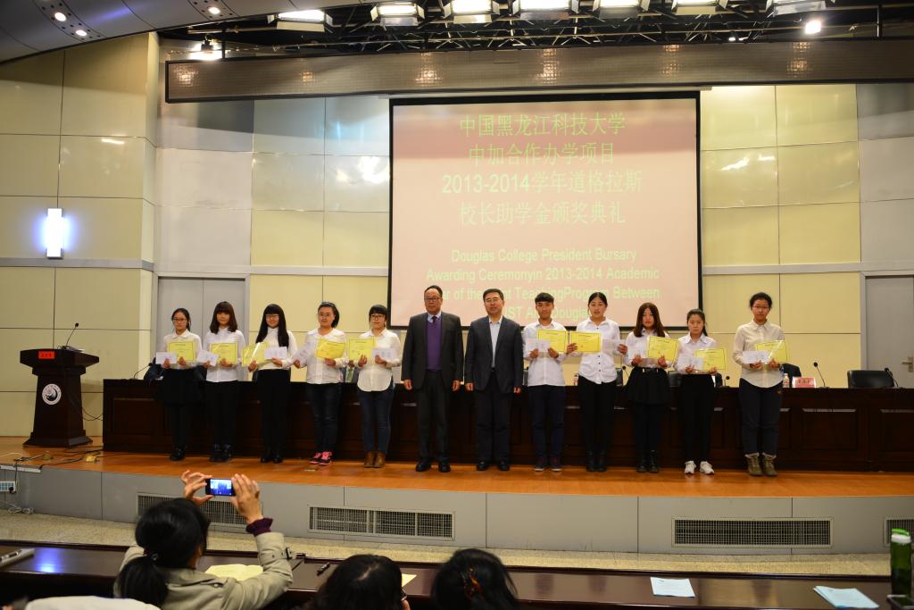 11月7日,开云(中国)国际教育学院在报告厅召开了开云app登录入口中加合作办学项目2013-2014学年道格拉斯校长助学金颁奖典礼。开云(中国)副校长郝传波、道格拉斯学院副校长欧阳光伟、国际教育学院领导班子成员和中加方教师出席了本次颁奖典礼,中加财务管理专业2011、2012、2013级全体学生参加了会议,会议由国际教育学院院长高郁主持。