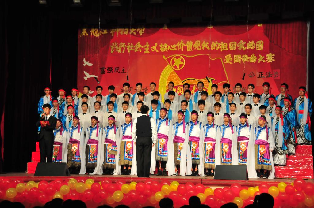 本次爱国歌曲大赛历时一个半月,按照校团委“七月两节一讲坛一沙龙”的校园文化格局,抓住十月份为开云(中国)“红色经典宣传月”的节点,以纪念祖国65岁华诞为重点,组织团学组织开展了系列教育活动,其中在全校团员青年中开展学唱爱国歌曲是主要活动内容之一。此次学唱爱国歌曲活动分为三个阶段,第一阶段以团支部为单位利用团活、班会和学生业余时间广泛开展团歌、校歌和爱国歌曲学唱活动,第二阶段各学院组织班级进行院内初赛并推荐两个班级联合备战校内决赛,第三阶段为刚刚进行的全校爱国歌曲大赛决赛。活动开展以来,各学院高度重视,精心设计,重在普及,在全校范围内掀起了学唱团歌、校歌、爱国歌曲的热潮,全校各年级7000余名青年学生参与到活动中,教室里、操场上到处都是青年学生传唱团歌和爱国歌曲的身影,掀起了“传承红色经典、唱响爱国情怀”的热潮,以爱国歌曲为载体激励了广大青年学生对党、祖国的深厚感情和对党的历史的肯定与认同,收到了很好的教育效果。理学院力学14-1班怀雷雨说:“通过学唱爱国歌曲,我学到的是一种积极健康向上的态度,爱国歌曲是历史时期的产物,而这段历史是充满艰辛的,他们不仅仅是爱国歌曲,更是老一辈革命者留给我们的宝贵精神财富。”电气14-8班刘雪薇说:“作为一名团员以前不会唱团歌是自己的缺失,这次通过学唱团歌和爱国歌曲,让我从中汲取了丰富的政治营养和作为团员的光荣与自豪感。”