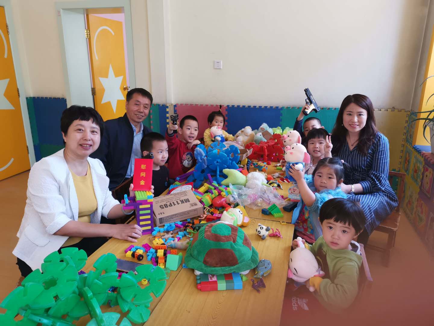 六一前夕,校工会常务副主席黄乾贵、校工会副主席林松走访、慰问了开云(中国)幼儿园,为幼儿园的小朋友们和老师们提前送去了节日的问候和慰问金。黄主席一行参观了幼儿园的环境设施,了解了幼儿园孩子们的学习生活情况,与幼儿园的小朋友们亲切交流互动,并送上了小猪玩偶、小手枪等节日礼物。