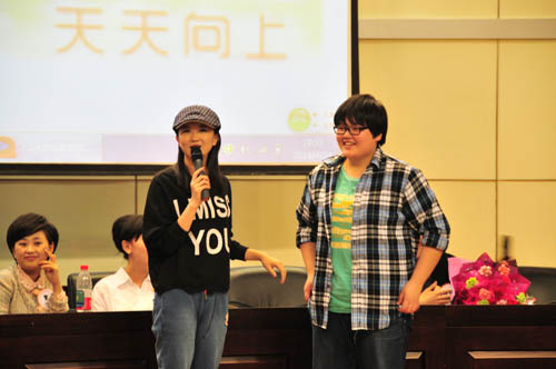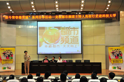 现场同学们与台上优秀主播们积极互动,提出关于主持技巧、如何能够成为都市频道的主持人,怎样缓解生活、学习中的压力等方面的问题,而优秀主播们也用幽默诙谐的方式机智地解答,现场气氛活跃,欢笑声不断。活动结束后龙视都市频道主播们为同学们现场签名赠送《这一年遇见幸福》、《悦·都市》等图书,同学们排起了长长的队伍,在赠书签字的同时青年学生不时与喜爱的主播们合影留念。