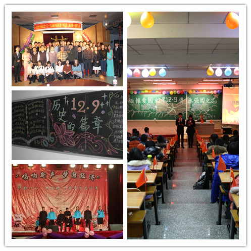 近一段时间以来,全校各级团学组织通过宣传、教育等手段,围绕纪念“一二•九”学生运动79周年开展了形式多样、内容丰富的系列纪念活动。各团支部开展了“勿忘一二•九,共筑中国梦”主题团活;校级学生组织在全校范围内开展了纪念一二九的系列活动,如青春诗会、演讲比赛、志愿者文艺汇演等;各学院也积极开展纪念活动,如矿业学院、安全学院等办了纪念“一二•九”运动79周年暨先优表彰大会,环化学院、材料学院、计算机学院、管理学院、经济学院、理学院、研究生学院等分别举办了纪念“一二•九”运动79周年文艺汇演,电气学院、电信学院、机械学院、建工学院、人文学院国、国教学院、外国语学院等都依托“一二•九”运动主题,结合自身学院实际和特色,举办了演讲比赛、征文比赛、党团知识竞赛、建筑文化艺术节、“我爱我家”寝室文化创意活动、外文歌曲大赛等活动。通过系列分层次、分类别的丰富活动,形成了如火如荼的纪念氛围,表达了全校团学组织和青年学生不忘国耻,奋发自强,传承“一二•九”运动精神,实现中国梦、青春勇担当的信心和决心。