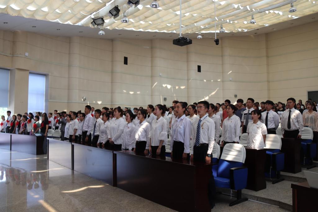大会在雄壮的国歌声中正式开始,本次大会分为两个阶段。会议第一阶段,进行庆祝建党98周年“先优”表彰。首先,副院长张元洪宣读了《关于命名表彰“先优”的决定》,与会领导为获奖集体和先进个人代表颁发了获奖证书。接着,优秀党务工作者高方老师、优秀共产党员代表聂朝奎同学,分别做了典型经验交流。最后,党委书记陈连军作了题为《坚定理想信念争当先锋模范不断开创学院事业发展新局面》的报告,报告回顾了中国共产党98年来的光辉历程,分析了党员教师、学生的初心和使命是什么,希望全体党员要深入学习贯彻落实习近平新时代中国特色社会主义思想,牢固树立“四个意识”,坚定“四个自信”,做到“两个维护”;全体党员要守初心、担使命,找差距、抓落实,齐心协力,攻坚克难,踏踏实实做好当下的工作和学习。