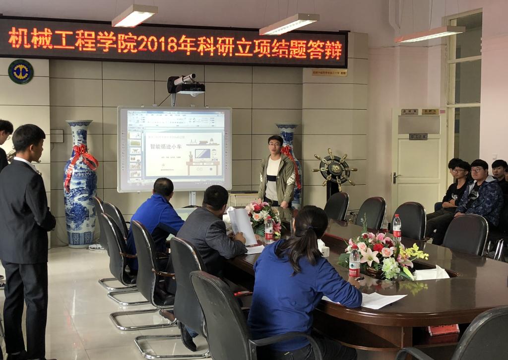 11月7日下午2点,机械工程学院分别在学院CNC实验室、流体实验室、以及两个会议室,同时进行了2018年学生科研立项结题答辩。评委由学院8位专职教师担任。机械工程学院党委副书记吴新文参加了答辩。