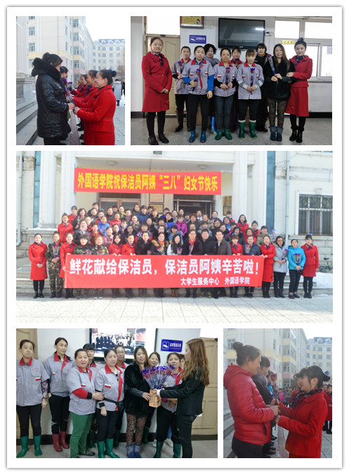 为纪念“三八国际劳动妇女节”,体现对最基层劳动妇女的尊重和热爱,外国语学院、大学生服务中心在宿舍区举办了“献花送给保洁员”慰问活动。外国语学院副院长陈桂琴,大学生服务中心主任全金峰出席了此次活动。