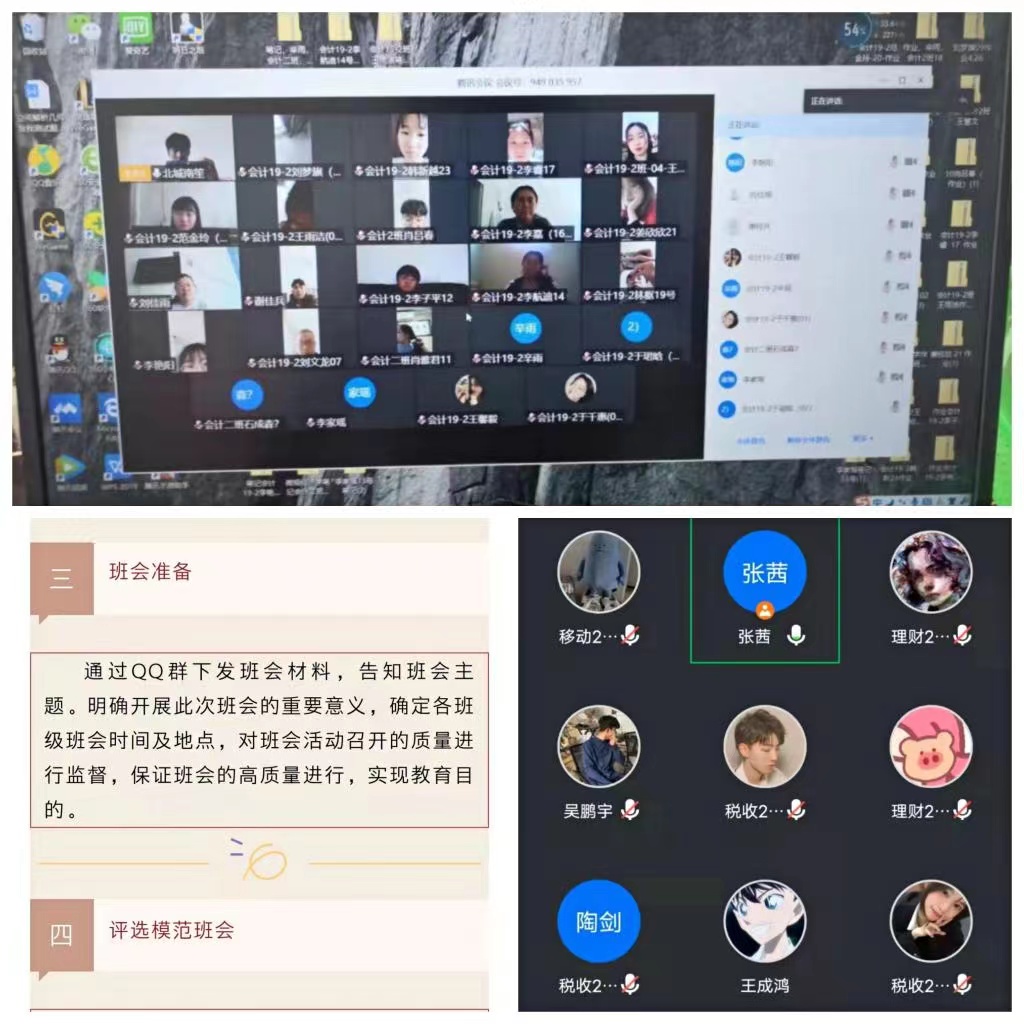 “云班会”护航,助力线上学习教育。班主任以疫情防控措施、网课学习要求、国际形势分析、“两会”精神学习等为主题在班级微信群开展“云班会”。与学生进行“屏对屏、键对键”“零距离”互动交流,全面了解学生情况,让学生们感受着集体的关爱与温暖,不仅消除了疫情下的紧张气氛,也让所有学生都能有目标、有方向、有依靠、有底气,做到安全健康和学习成才两不误。