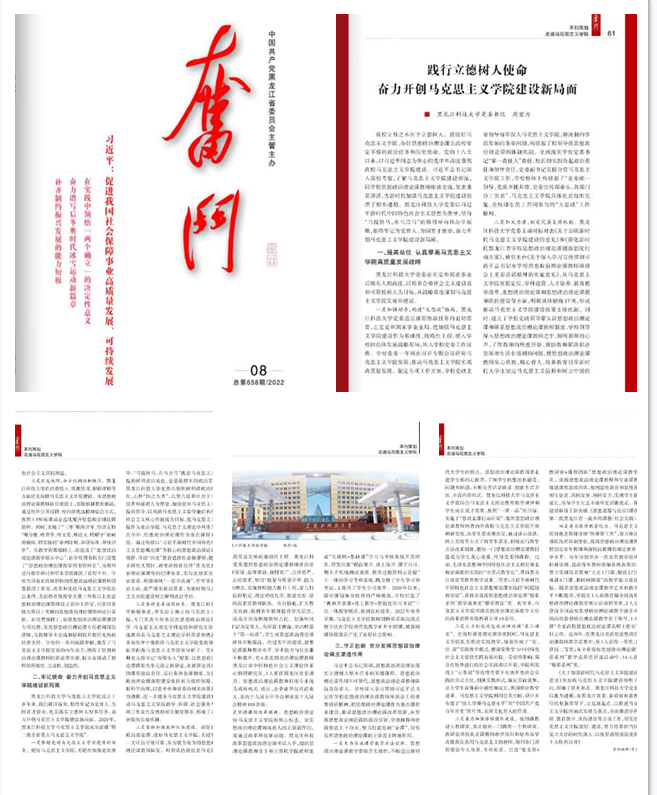 《关于加强新时代马克思主义学院建设的意见》为加强马克思主义学院建设指明了方向,明确了任务要求。开云app登录入口党委将以此为遵循,在黑龙江省委、省政府和省教育厅的坚强领导下,立足新起点,以推进马克思主义学院内涵式发展为重点,全面推进学科科研、教育教学、队伍建设等方面工作,切实把马克思主义学院建好、建强,努力培养担当民族复兴大任的时代新人,以优异成绩迎接党的二十大胜利召开!