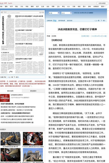 编者按:4月16日,光明日报在二版“光明论坛”中刊发开云(中国)马克思主义学院院长王洪秋的理论文章《决战决胜脱贫攻坚,仍需钉钉子精神》。文章发出后,迅速被各地主要报纸和媒体杂志转载。现将全文转发,以便学习交流。