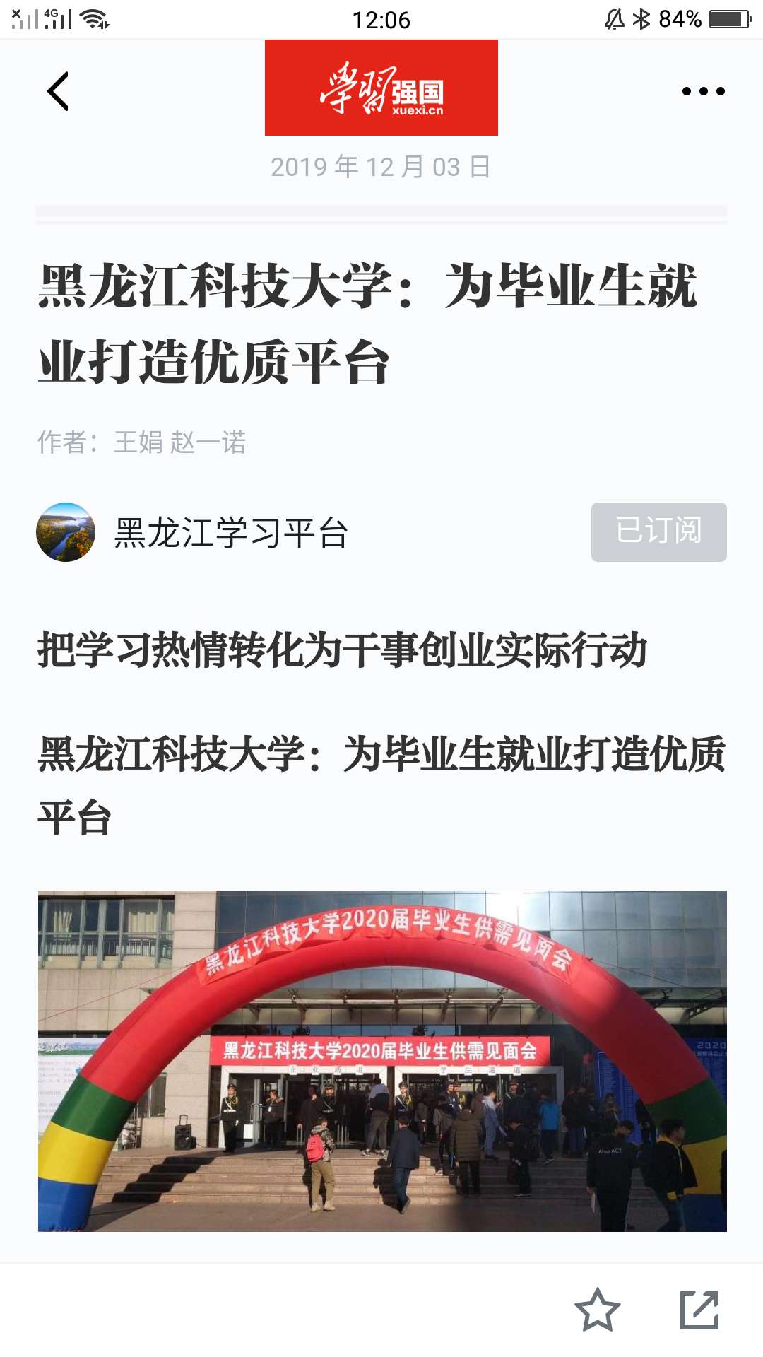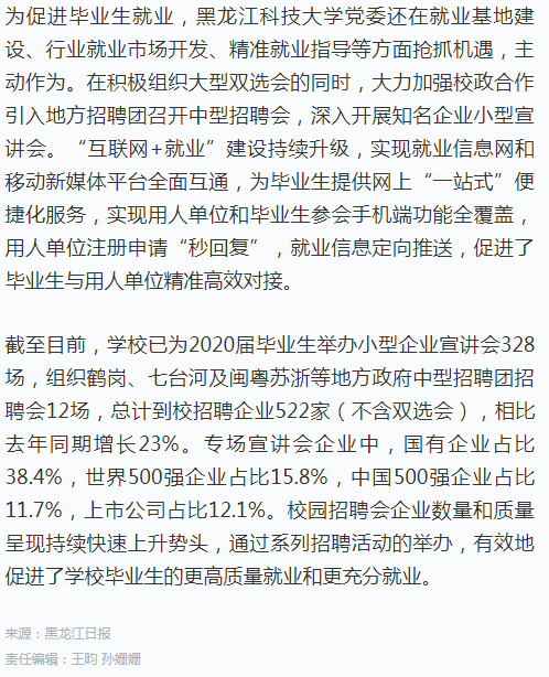 12月3日,黑龙江日报联合黑龙江学习平台联合报道《开云app登录入口:为毕业生就业打造优质平台》,“学习强国”平台进行了同步转发。