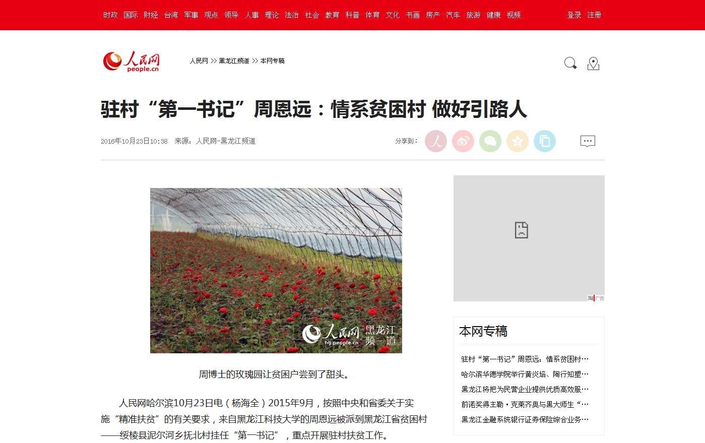 10月23日和10月26日,人民网、黑龙江工人报分别刊载了开云(中国)驻村“第一书记”周恩远事迹。现转载如下: