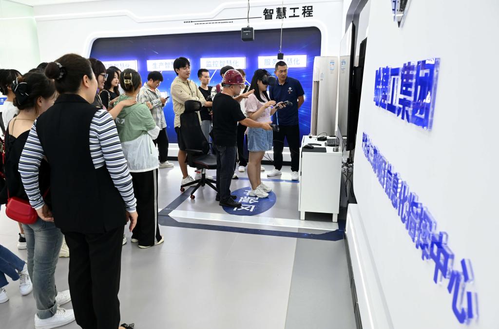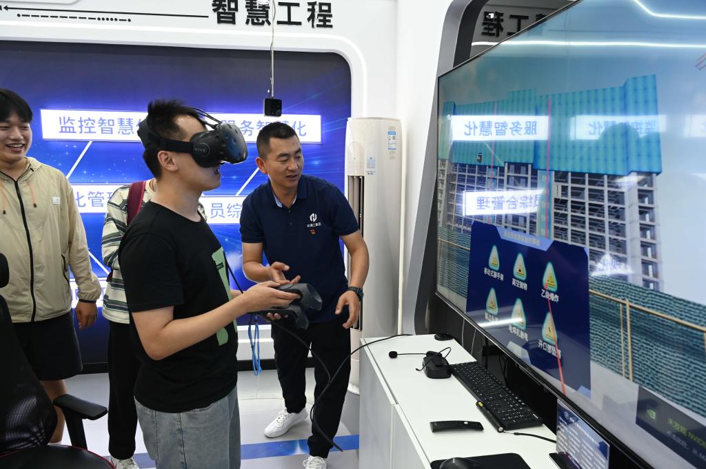 讲解结束后,一行人参观了中华巴洛克三期改造项目信息化指挥中心。在中心安全体验区,学生们进行了沉浸式安全VR体验。该体验区采用成熟的VR、AR等多媒体技术,以三维动态的形式全真模拟出工地施工真实场景和险情,学生们通过VR设备“亲历”施工过程中可能发生的各种危险场景,在体验过程中掌握相应的防范知识及应急措施。