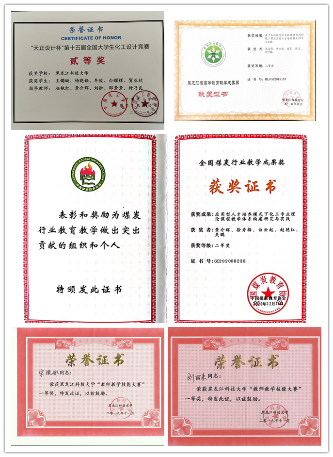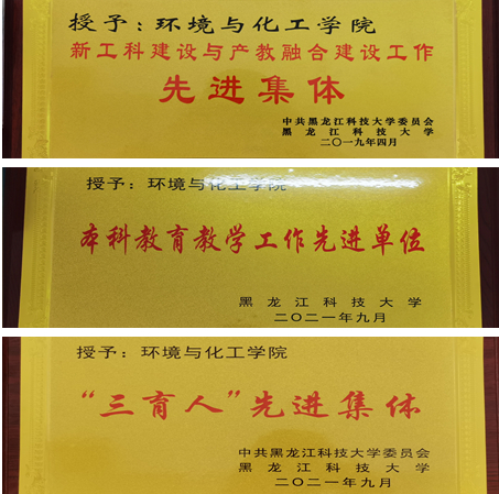 秉承工程教育认证理念,注重学生能力培养,提升人才培养质量。秉承“学生中心,产出导向,持续改进”的工程教育认证理念,积极推动专业内涵建设,提升学生综合创新能力,环境工程专业已完成专业认证专家入校考察,化工和应化专业对标专业认证标准,构建以学生能力培养为核心以产出为导向的教学体系,学生在学科竞赛、科研立项等创新能力培养方面均取得明显成效,近三年,获得全国大学生化工设计二等奖3项和黑龙江省级大学生化工设计、化工实验、互联网+等竞赛一、二等奖30余项。